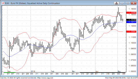 When a market makes an extremely narrow range move the Bollinger Bands will noticeably narrow together.